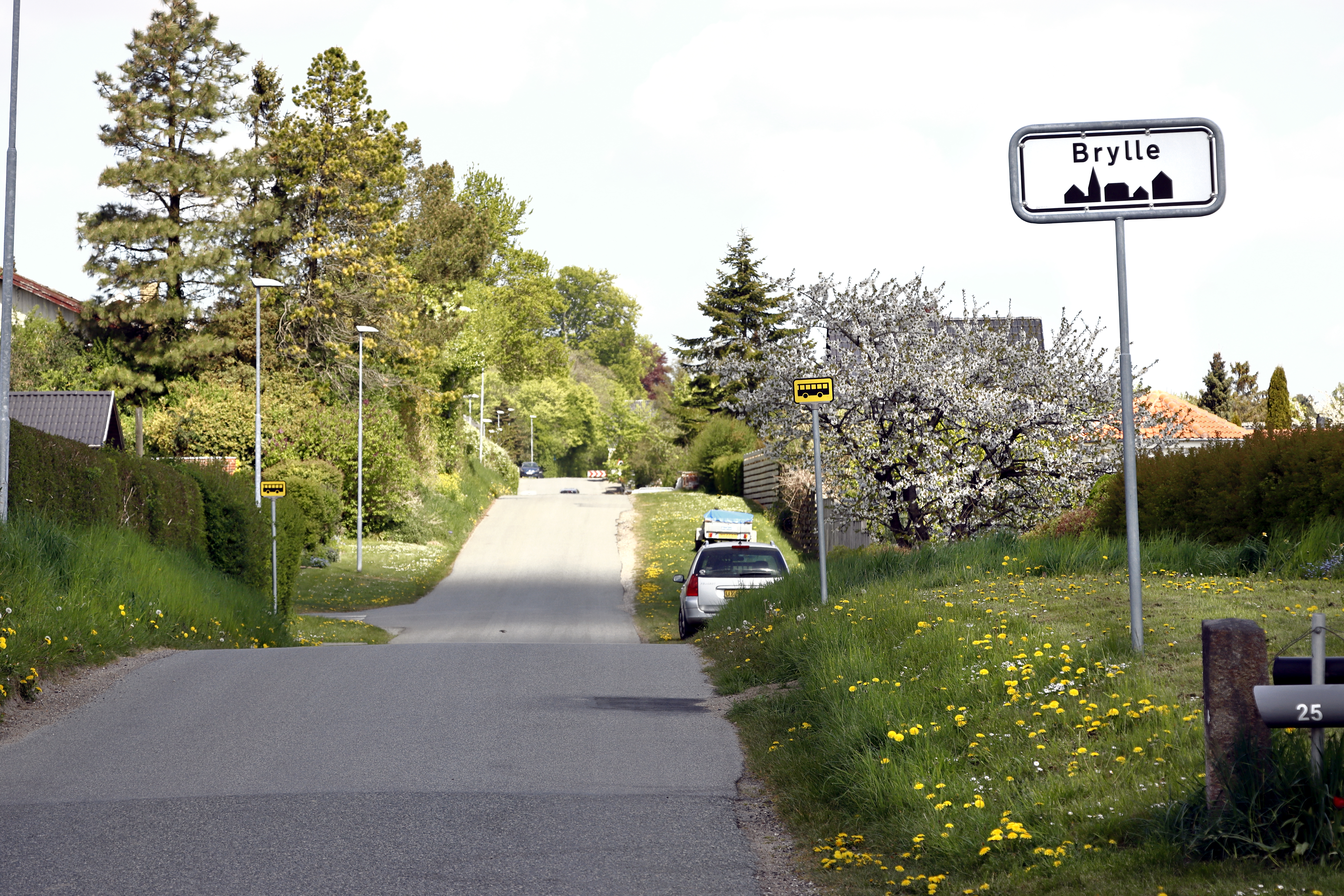 Centralt i Brylle, finder du et stoppested for en bus, der forbinder Brylle med en række af Fyns største byer.